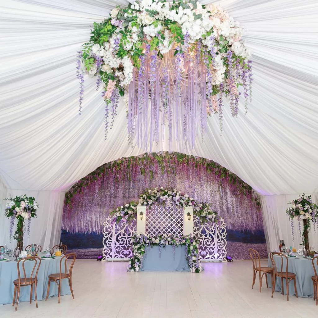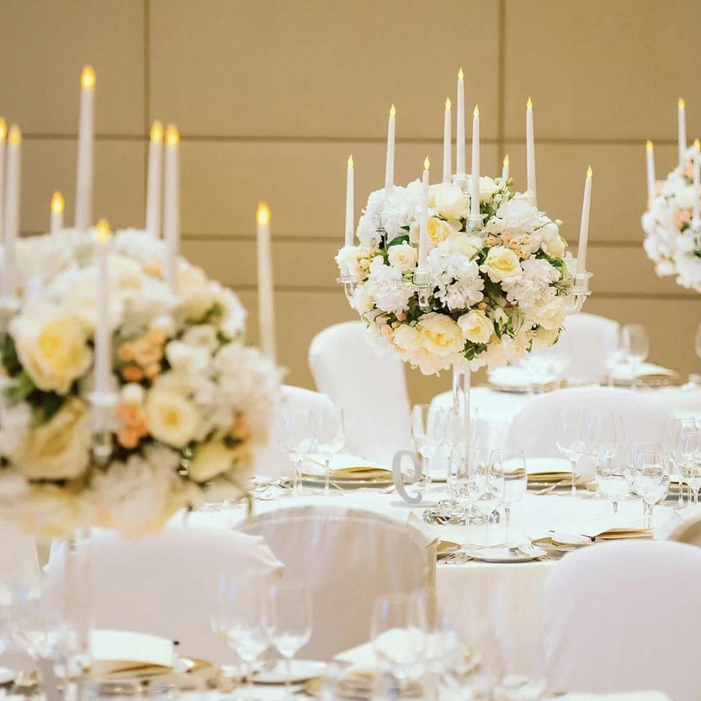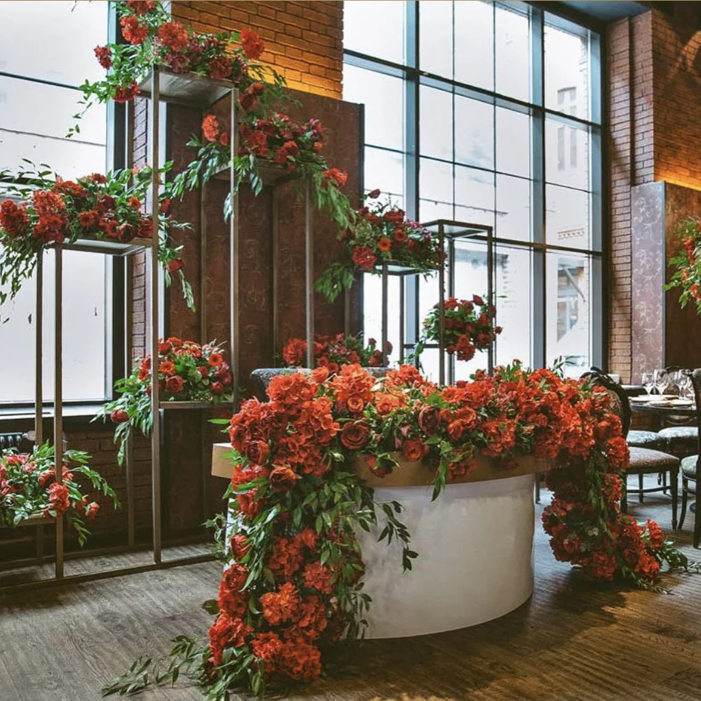 Оформление свадебного зала цветами рекомендуем заказывать заранее. Это позволит не торопясь определиться с идеями и вариантами декора, подобрать подходящие растения, определить условия их размещения.